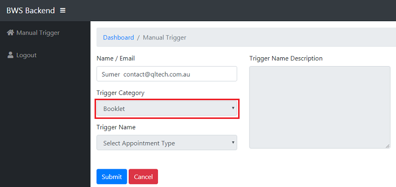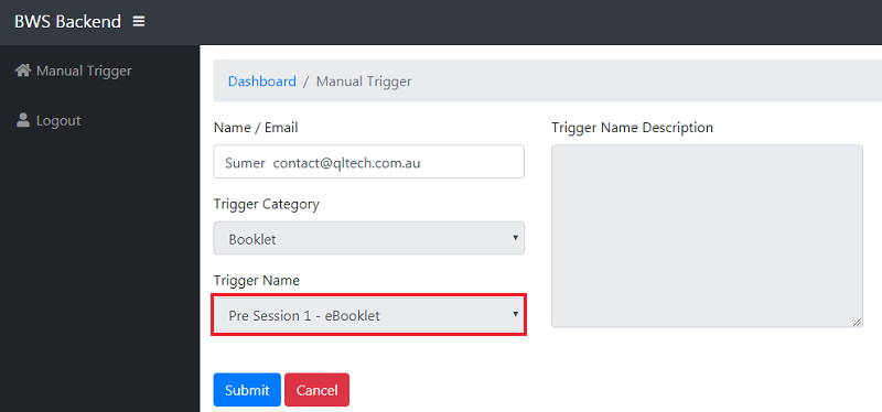 - Now next step is in trigger name - Select Session that you want to send booklet to client and submit. Now Client will receive booklet email that you send.